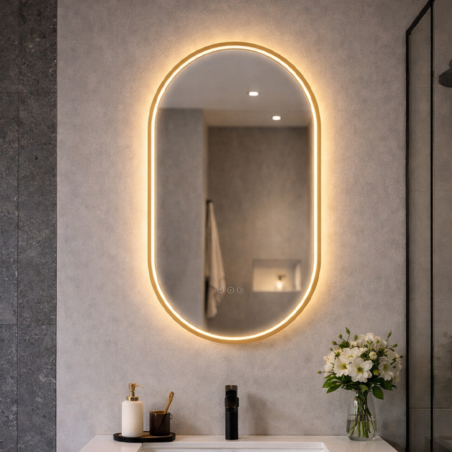 Ogledalo LED Fisher ML-24132A 32W zlatno ovalno